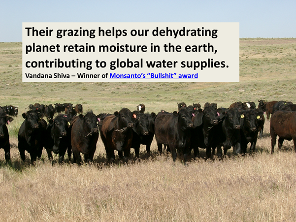 The following story considers only the industrial model of meat production. There are other better alternatives. Actually the water usage per animal in the big beef plants is around 730 gallons per head, not 132 gallons. James McWilliams is right on with his analysis on water hungry alfalfa – why export our precious water?